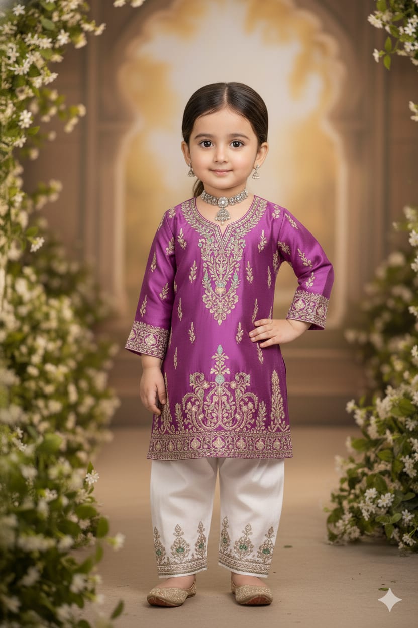 Style Tip: Pair with embellished juttis or mojris to complete your little one’s traditional festive look.